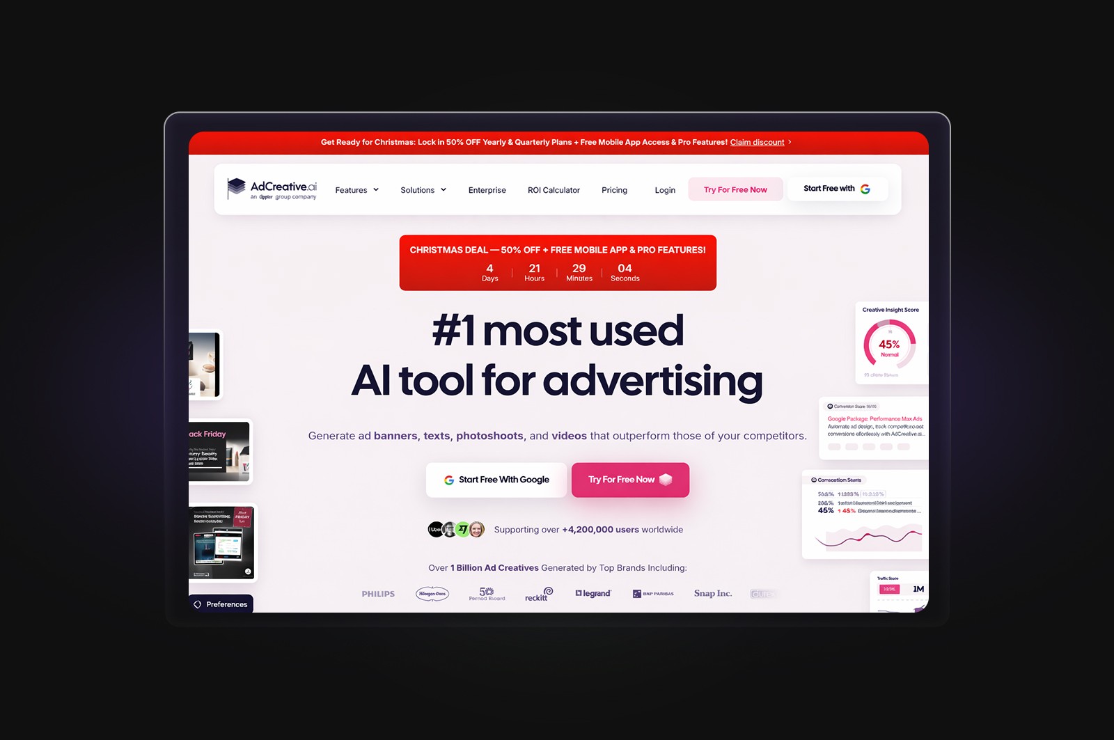 AdCreative.ai is another AI-powered marketing tool capable of creating ready-to-ship ads with high-conversion copies and designs. It also suggests design tweaks to improve performance on Meta and social media platforms. AdCreative AI also acts as an AI analytics tools for affiliate marketing providing accurate performance of each campaign.