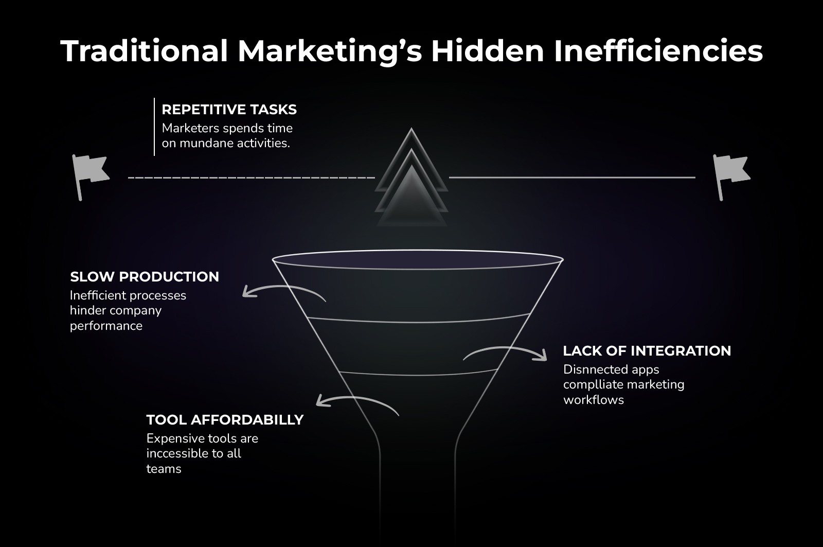 Although the traditional method worked well previously, it is no longer relevant. According to Statista, 74% of marketers struggle with producing content on time, while 61% of marketers fail to connect their AI workflows. The main reason why traditional marketing is no longer relevant is because: