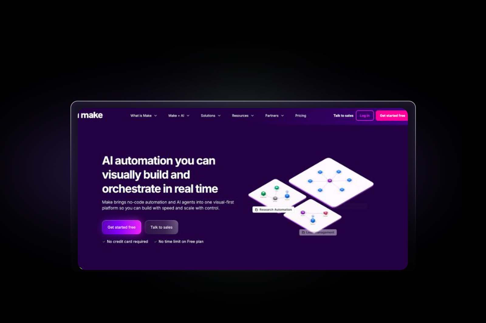 Make is a powerful vibe marketing AI tool that follows a no-code automation within the platform to connect workflows together. It also includes advanced automation tools and AI-powered content management that automates and adapts based on real-time data.