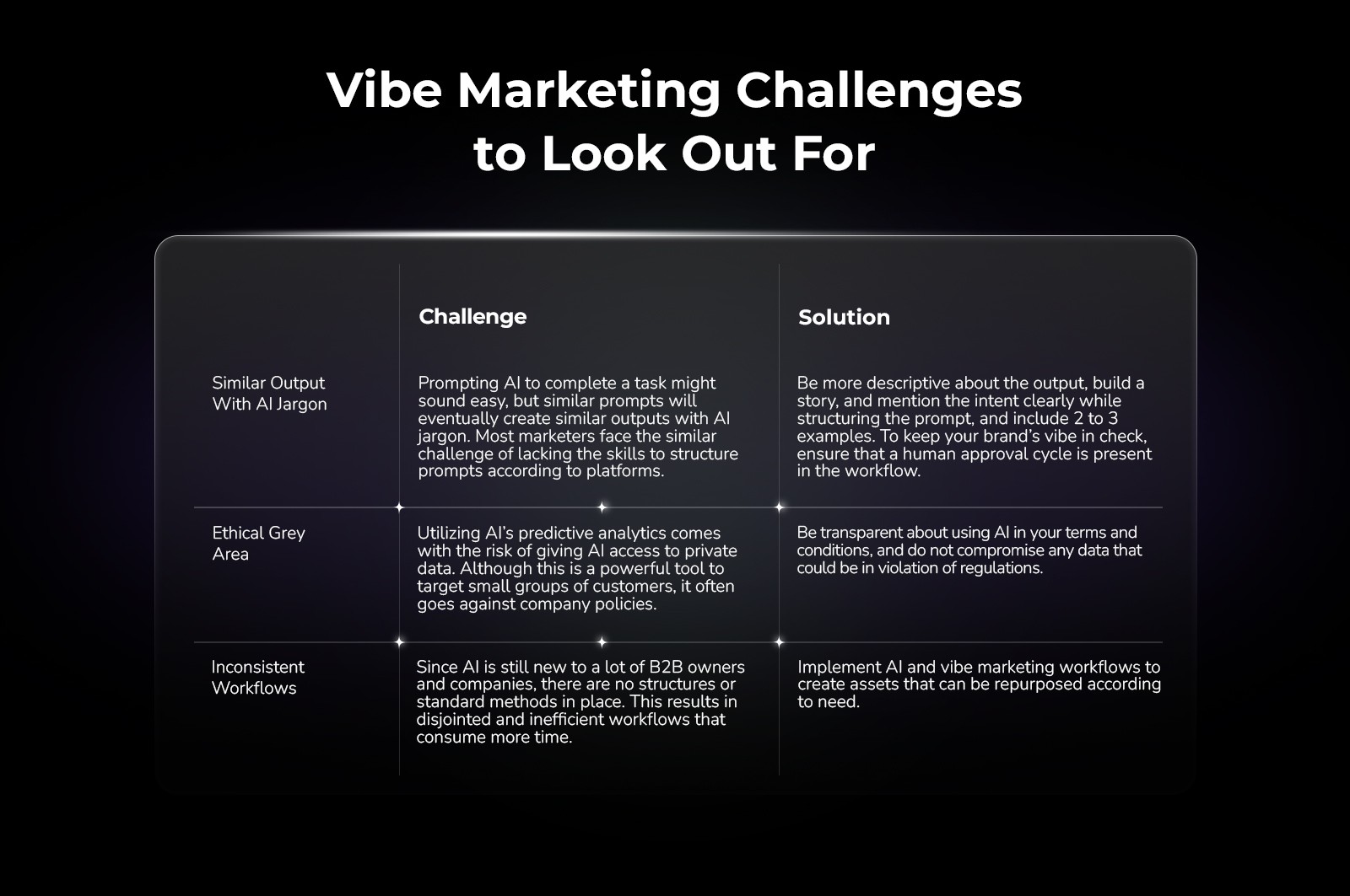 Although vibe marketing challenges still exist, it is still a good alternative to traditional methods of marketing for B2B brands. As it increases efficiency, reduces production time, and automates repetitive tasks.