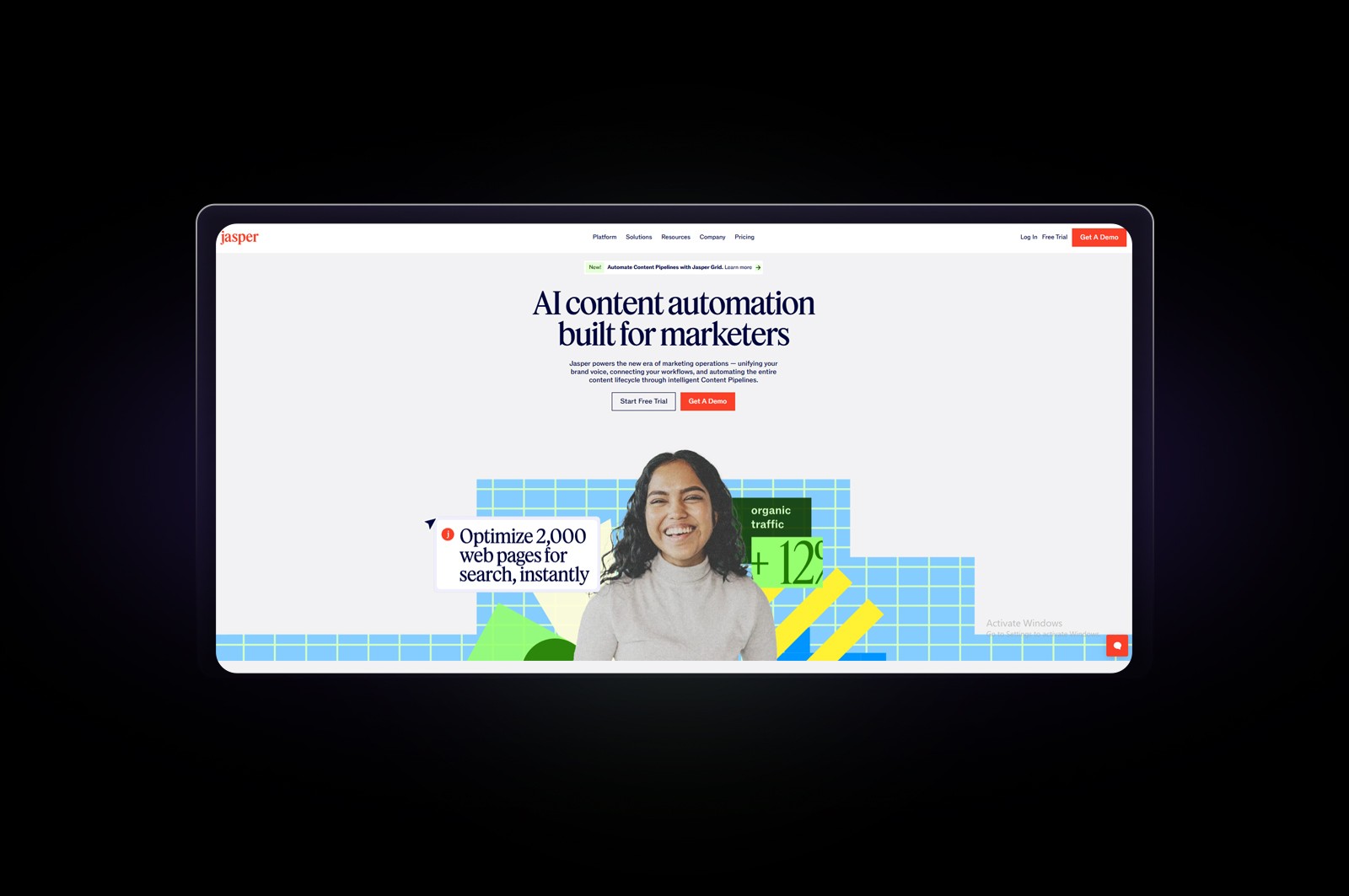 Jasper is another powerful content creation tool which is popular among marketers. Besides creating content of all types it also helps creators with ideas, high-quality content formats and ready-to-publish text that can be altered according to your brand’s vibe.